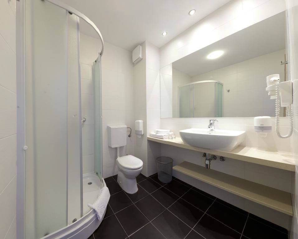 and flat-screen satellite TV are standard facilities in all of the Adria rooms. Walls are painted in a light shade of mocha, curtains are white and the bathrooms have beige and mocha tiles.