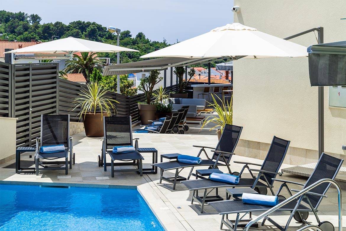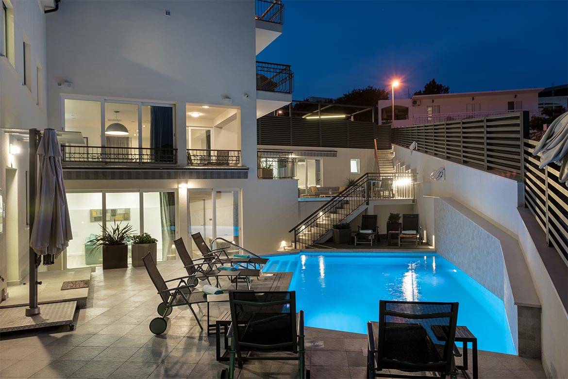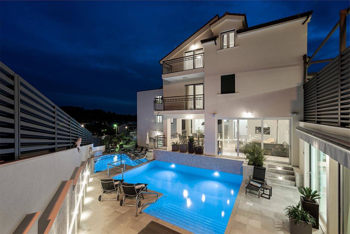 This venue is a one of a kind, unique place located in Hvar, just 850 meters from city center, and only 400 meters from beach. Unique architecture, original interior, spacious rooms with terraces, 2 amazing pools, relaxing and sunbathing area with automatized marquee, surround speakers, private and monitored parking, breakfast area, Champagne bar, reception, Playstation/TV area, sophisticated interior and overall décor - we set a bar pretty high. Photos of this venue speak more than words.