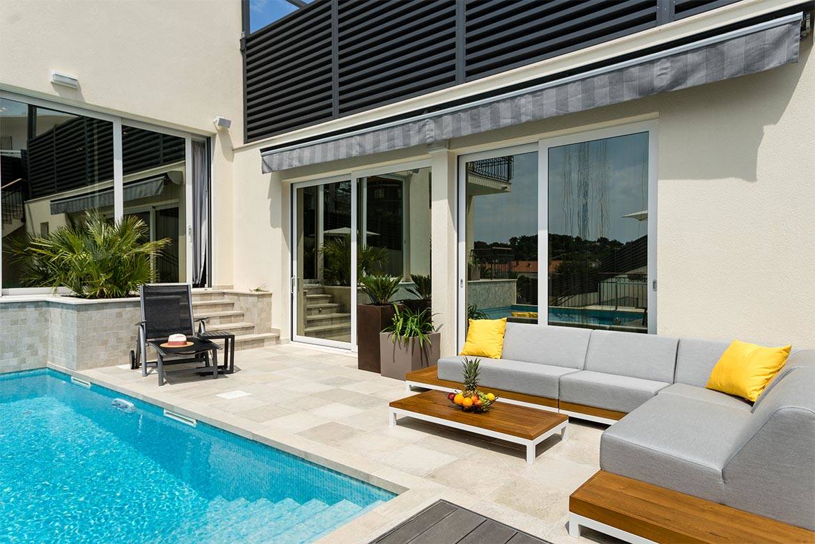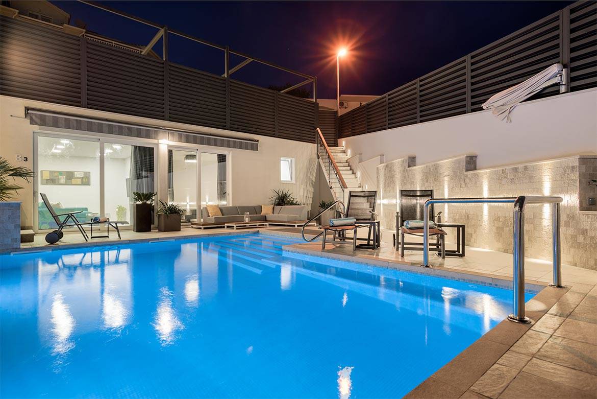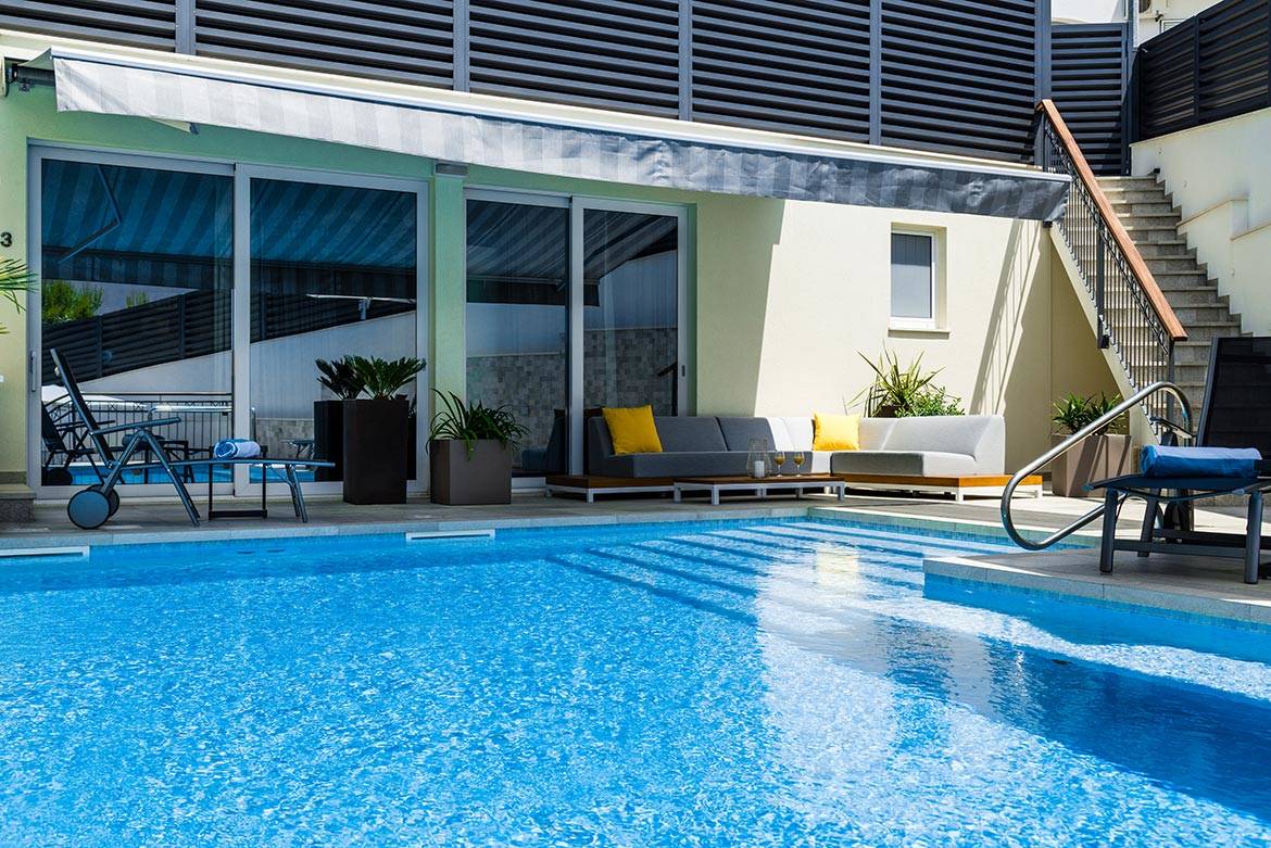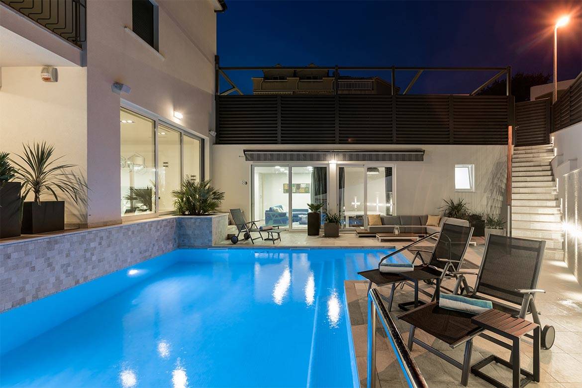 This venue is a one of a kind, unique place located in Hvar, just 850 meters from city center, and only 400 meters from beach. Unique architecture, original interior, spacious rooms with terraces, 2 amazing pools, relaxing and sunbathing area with automatized marquee, surround speakers, private and monitored parking, breakfast area, Champagne bar, reception, Playstation/TV area, sophisticated interior and overall décor - we set a bar pretty high. Photos of this venue speak more than words.