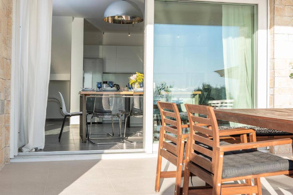 The villa is equipped with 4 bedrooms, 4 bathrooms, bed linen, towels, a flat-screen TV with satellite channels, a dining area, a fully equipped kitchen, and a balcony with sea views. The villa offers a terrace.