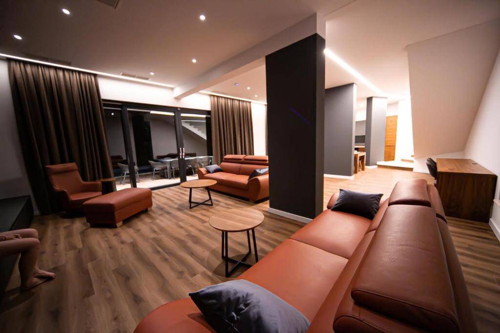 The villa provides a range of facilities such as a wellness area including an indoor pool. A private terrace with a swimming pool and hot tub is available what makes it perfect for any Hen group.